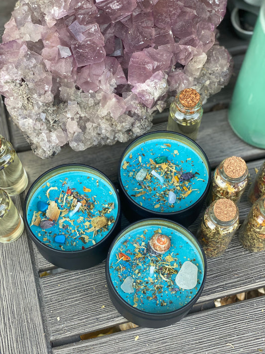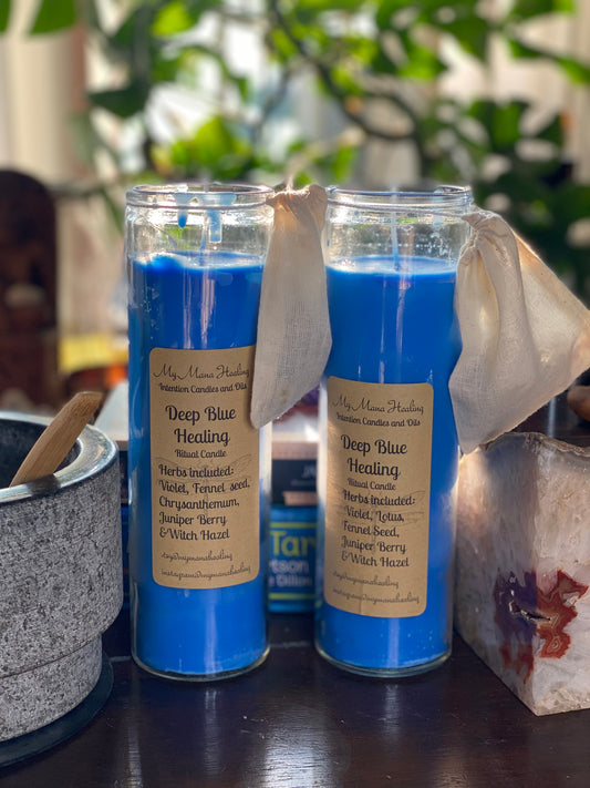 Deep Blue Healing Ritual and Intention Candle Ocean, Rosemary, Sage and Lavender